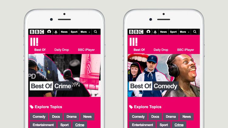 As BBC Three is now a digital brand that lives online across the BBC online portals and social platforms, it makes sense that the new guidelines reflected this. So rather than a static set of guidelines, Studio Output built an online hub which introduces the new brand and helps people to use it. This means that up-to-date downloadable assets are always to hand, alongside examples showing how to express BBC Three’s distinctive character.