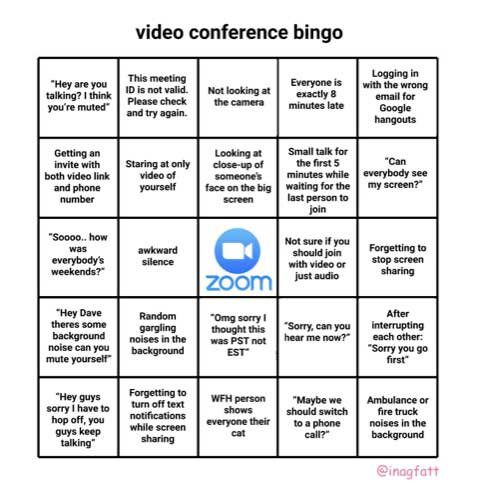 Video conferencing bingo was fun until everyone got the hang of it – ‘Tony you’re on mute. TONY YOU’RE ON MUTE’.