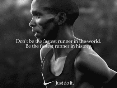 The range of campaign posters is full of bold, inspirational copy that sparks passion and a desire to be your best self. While they don’t insinuate that buying Nike products will make you the fastest runner in the world, the campaign shows that you can succeed even if the odds are against you. Nike reminds us that the first step to achieving a goal is to “Just Do It”.
