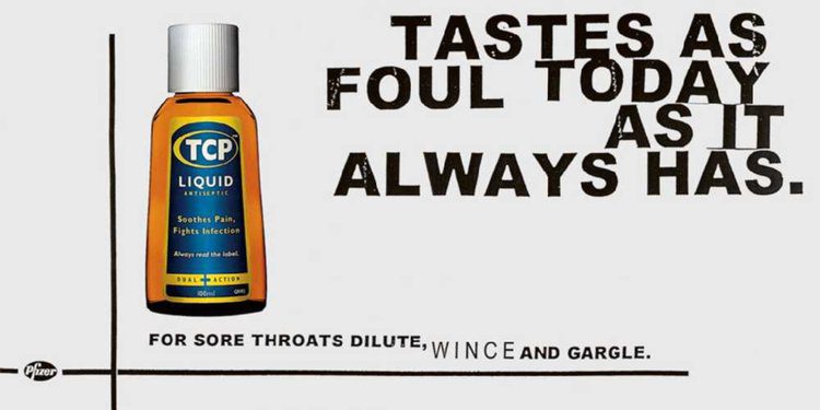 Which is why I couldn’t help but smile when I saw this advert for TCP with the strapline “Tastes as foul today as it always has.”
