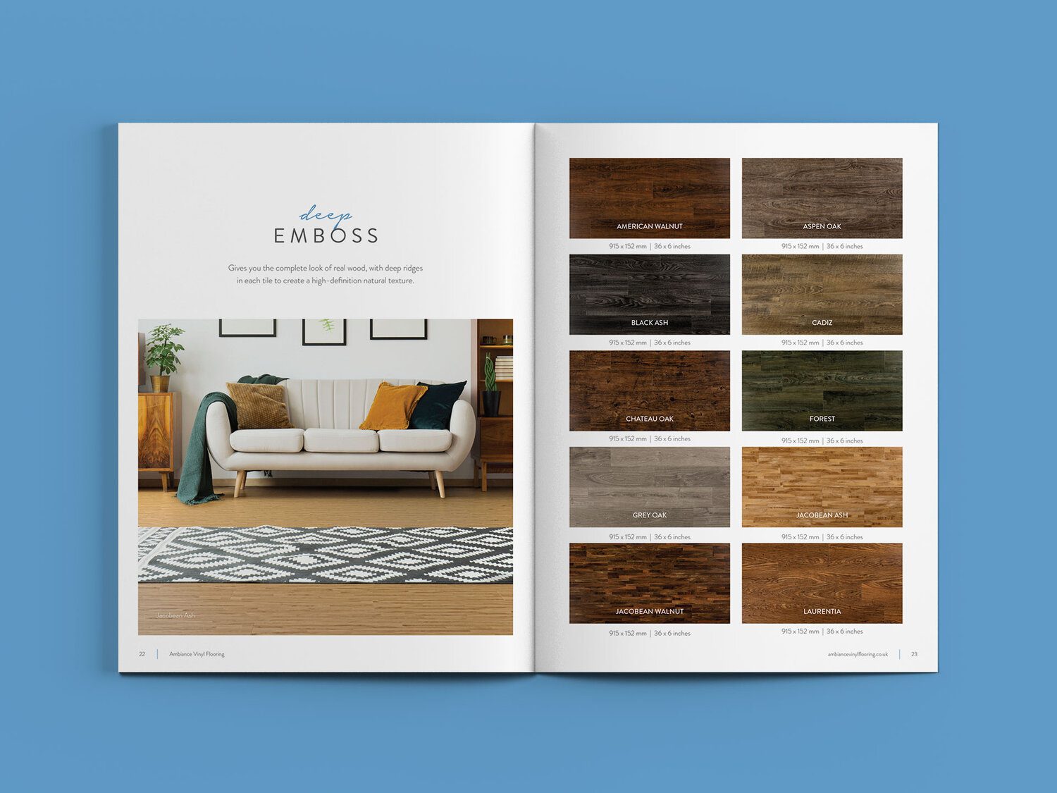 We were approached by Ambiance to create a new look and feel for the business. This included creating a luxury product brochure and the design and build of a new website to showcase their wide range of flooring products and feature strips available.